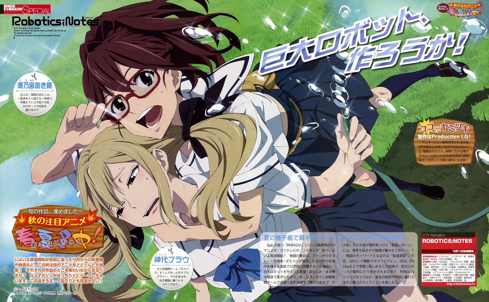 Robotics;Notes es el 3er juego de la serie “science adventure” tras Chaos:HEAd y Steins;Gate. A la vez está siendo adaptado al anime con una serie que va justamente por la mitad de su emisión. El argumento nos traslada a un futuro en el que la realidad aumentada se ha impuesto de gran manera y donde conocemos a Kai y a Aki, los 2 únicos miembros del club de robótica cuyo instituto tiene ganas de cerrar por falta de miembros, pese a que estén construyendo un robot gigante desde hace varios años.